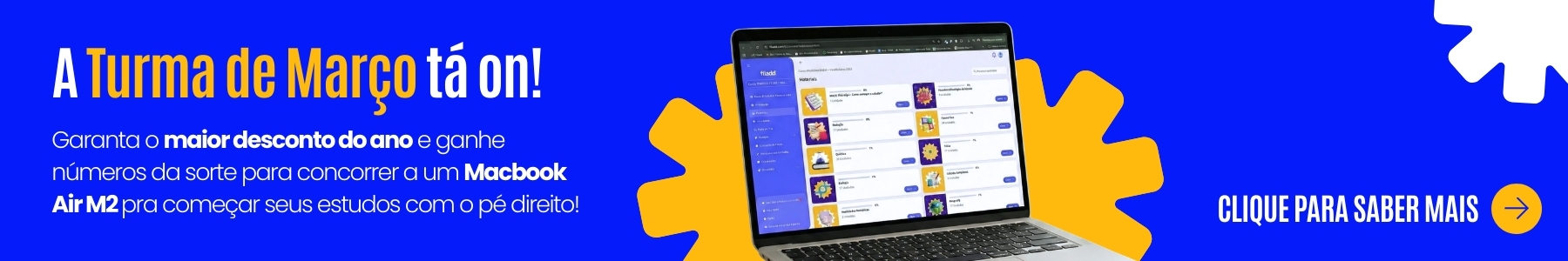 Conte com a orientação de um especialista em video chamada 1:1 sempre que precisar para criar ou ajustar seu plano e cronograma de estudos personalizado, garantindo disciplina para alcançar a faculdade dos seus sonhos.